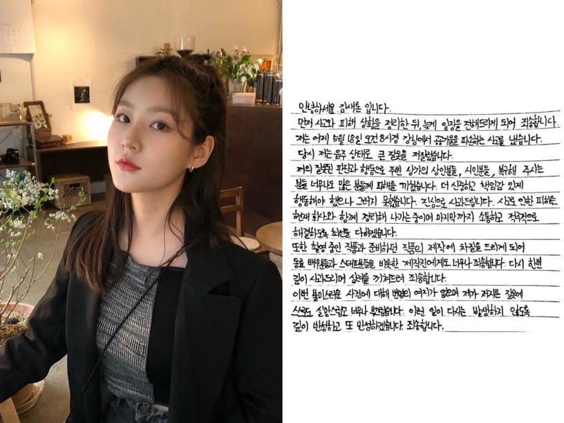 然而事件发生后,金赛纶第一时间并未承认酒驾,而是要求“血液检测”,没想到血液检测出的酒精浓度远远超标,是要吊销驾照的程度。而后金赛纶才透过经纪公司道歉,并在手写信中反省道:“对于这次的不光彩事件,我没有任何的辩解余地,我对于自己的错误感到羞愧又失望。”并表示已与经纪公司一起赔偿附近的商家的损失。