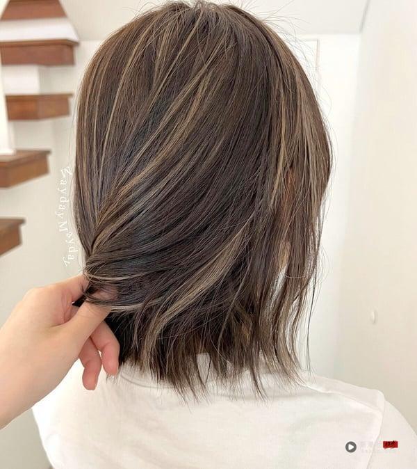 在雾棕底色上加入冷奶茶色线条染,打造出中性气质风格,不会过浅也不显黄,适合喜欢极简穿搭感、偏日系风格的女生,而且长发短发都可以驾驭!