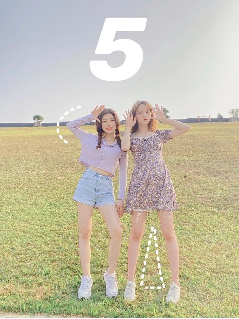 数字5拍照法不许有人不会!也是使用上述的三角构图法,手比5放头上,身体微倾斜靠向闺蜜更显亲密感~好姊妹则可以将双脚微微打开,两手比5放脸颊,可以搭配嘟嘴表情更减龄可爱~