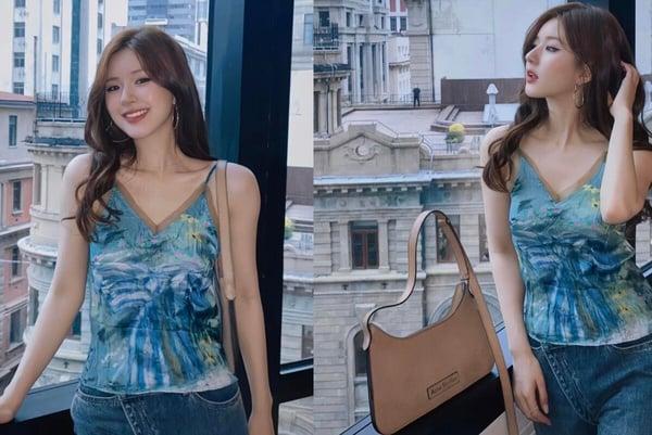 Acne Studios明星同款推荐:赵露思 x Acne Studios蓝色印花吊带上衣