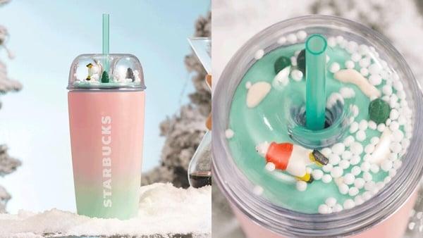 “粉绿渐层随行杯”容量约473ml,杯身以粉绿色做渐层设计,搭上珠光点缀,杯盖加入北极熊等装饰,真的可爱又好玩!无论是自用或送礼都很合适。